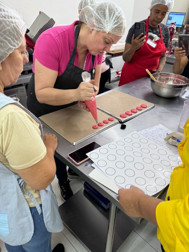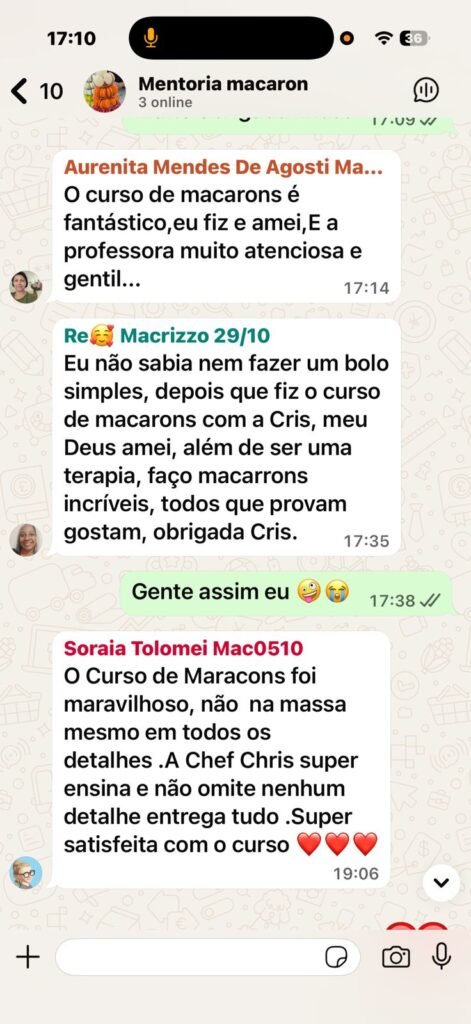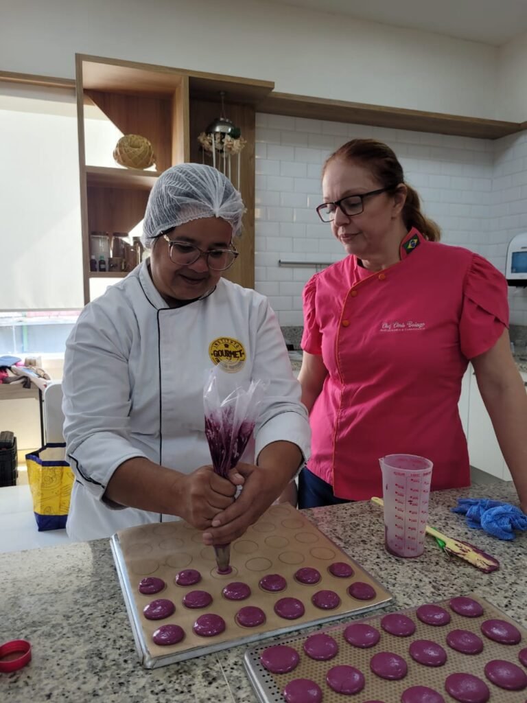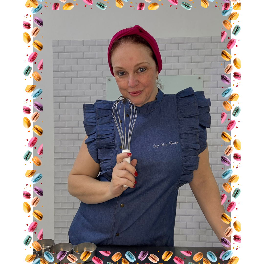 Você vai aprender o processo completo para produzir macarons perfeitos — desde o preparo da massa até o recheio e a montagem final. Tudo com as técnicas profissionais da Chef Chris, adaptadas para produção caseira..